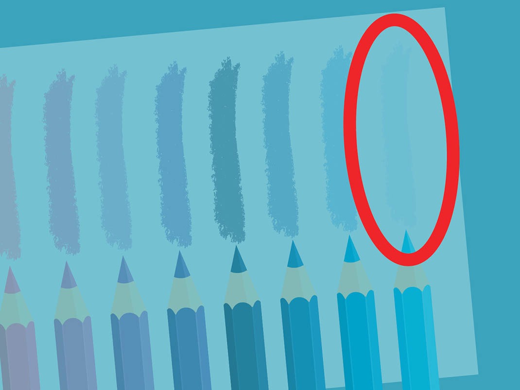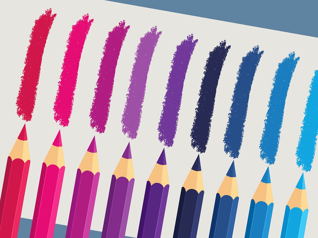 - On a scrap piece of paper, make a test mark with all your red/pink, and blue pencil crayons. (see image 1 below)