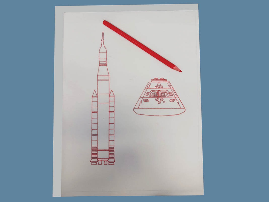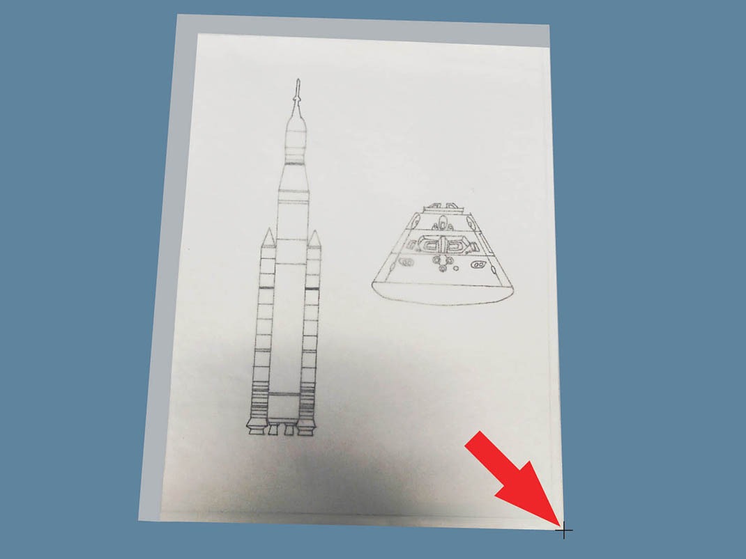 - Move your tracing paper to align it with the two lines you created on your picture page in Step 5. Affix the tracing paper back to your work surface. (see image 7 below)