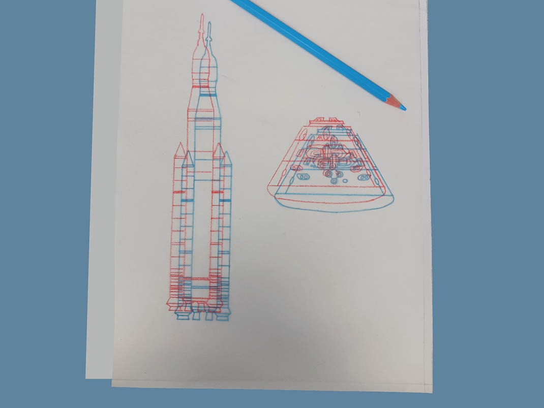 - Take your tracing paper and place it on a blank background (white works best). Put on your anaglyph glasses and admire your work!
